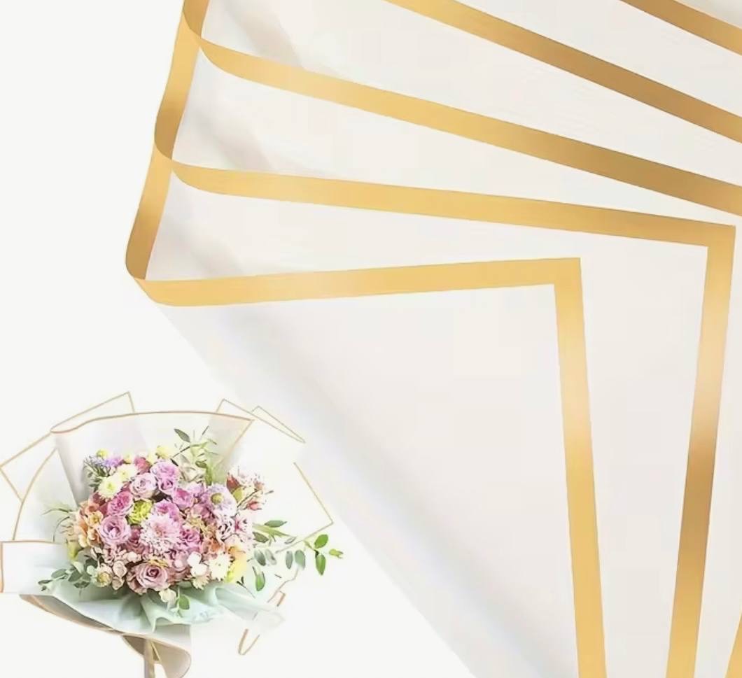 Iga leht on valmistatud vastupidavast, tihedast ja veekindlast floristipaberist mõõduga 58 × 58 cm. See ei rebene, ei kihistu ega kaota kuju kokkupuutel niiskusega, pakkudes lilledele head kaitset ja andes kimbule korrektse ning luksusliku välimuse.