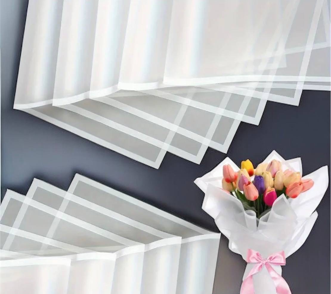 Veekindel lillede pakkepaber mõõtudega 58×58 cm on suurepärane valik nii värskete kui ka kuivatatud lillekimpude kaunistamiseks. Tugev ja kvaliteetne materjal hoiab niiskust, kaitseb lilli ning tagab kompositsioonile puhta ja professionaalse välimuse.